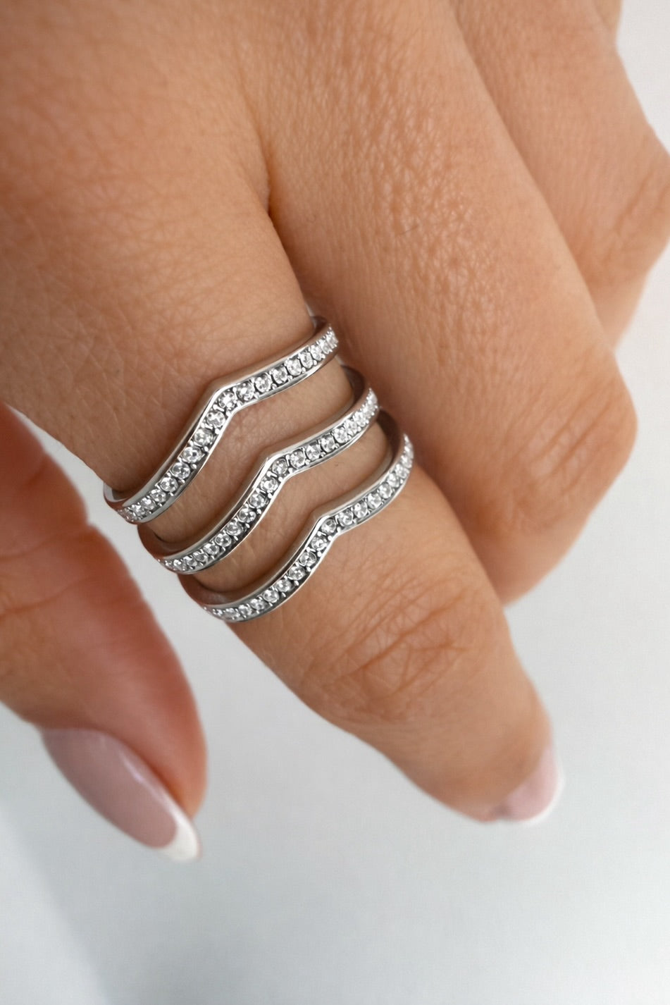 Anel ajustável em aço com brilhantes